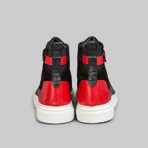 The first design to have been handcrafted in Italy for Kurt Lincoln. Made with 100% Italian top grade breathable leather both to the upper and lining, along with a branded latex free laser removable insole. Designed with comfort in mind, it is a stylish high top sneaker with sleek contours that offers a juxtaposition of classic street appeal. The sneaker is our take on adding modern artistic design to classic footwear. These sneaker provide versatility to your wardrobe; wear them casually with skinny or regular fit jeans for a casual look or dress them up with suits, trousers and blazers for that smart-casual and elegant look with a fashionable twist Phantom blk/red high top sneakers.