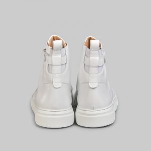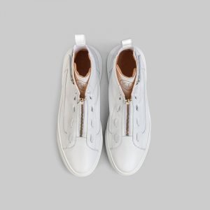 The first design to have been handcrafted in Italy for Kurt Lincoln. Made with 100% Italian top grade breathable leather both to the upper and lining, along with a branded latex free laser removable insole. Designed with comfort in mind, it is a stylish high top sneaker with sleek contours that offers a juxtaposition of classic street appeal. The sneaker is our take on adding modern artistic design to classic footwear. These sneaker provide versatility to your wardrobe; wear them casually with skinny or regular fit jeans for a casual look or dress them up with suits, trousers and blazers for that smart-casual and elegant look with a fashionable twist Phantom white high top sneakers. Size up one size than your regular shoes size.